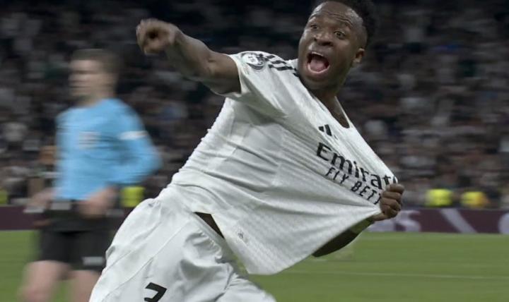 在皇家马德里主场对阵阿森纳的比赛中,维尼修斯扳平比分,这是皇马队史首次对阿森纳进球。