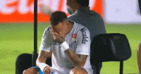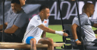 第34分钟,内马尔无对抗下倒地,表情很无奈