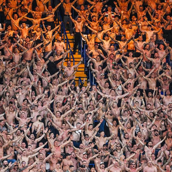 视觉冲击力,大量华沙球迷在斯坦福桥看台光膀子助威ETChalmers @懂球帝2025-04-18 04:26欧协联1/4决赛次回合,切尔西主场对阵华沙莱吉亚,来到斯坦福桥球场观赛的客队球迷在看台上光着膀子助威,场面相当壮观。图片显示,大量华沙莱吉亚球迷在斯坦福桥的看台上选择脱掉上衣,集体用光膀子的行为展示他们对球队的支持的热情,这一画面形成了独特的视觉冲击力。目前,华沙莱吉亚在客场2-1领先切尔西,不过两回合总比分仍以2-4落后。展开更多