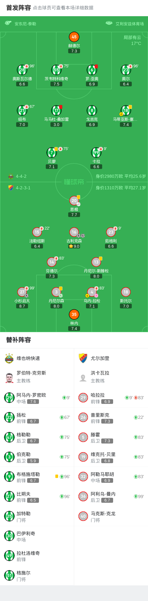 第105分钟,尤尔加登球员普里斯克助攻古利克森打入一球。