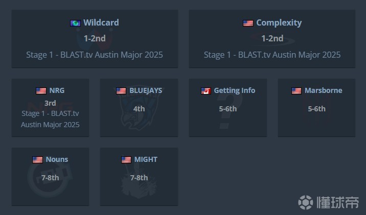 通过各地区预选赛,有16支队伍跻身奥斯汀Major-Stage1赛事。6月3日-6月6日,Stage1赛事将率先开打,瑞士轮前8将晋级Stage2,具体参赛队如下。