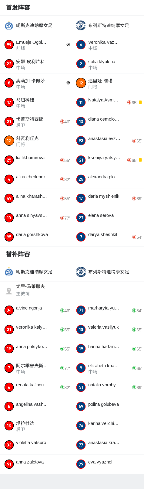 明斯克迪纳摩女足2-0布列斯特迪纳摩女足,奥莉加-卡佩莎破门,Emueje Ogbiagbevha锁定胜局