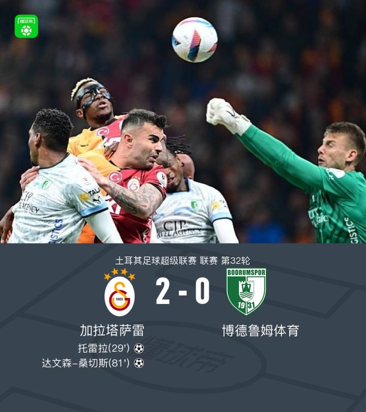 加拉塔萨雷2-0博德鲁姆体育,托雷拉破门,达文森-桑切斯锦上添花