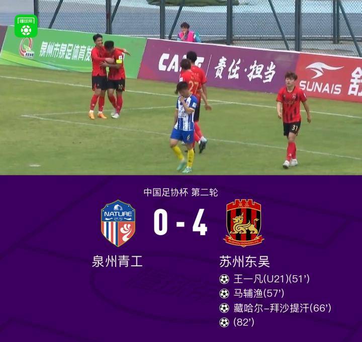 苏州东吴4-0完胜泉州青工,张凌峰两助,藏哈尔、王一凡破门