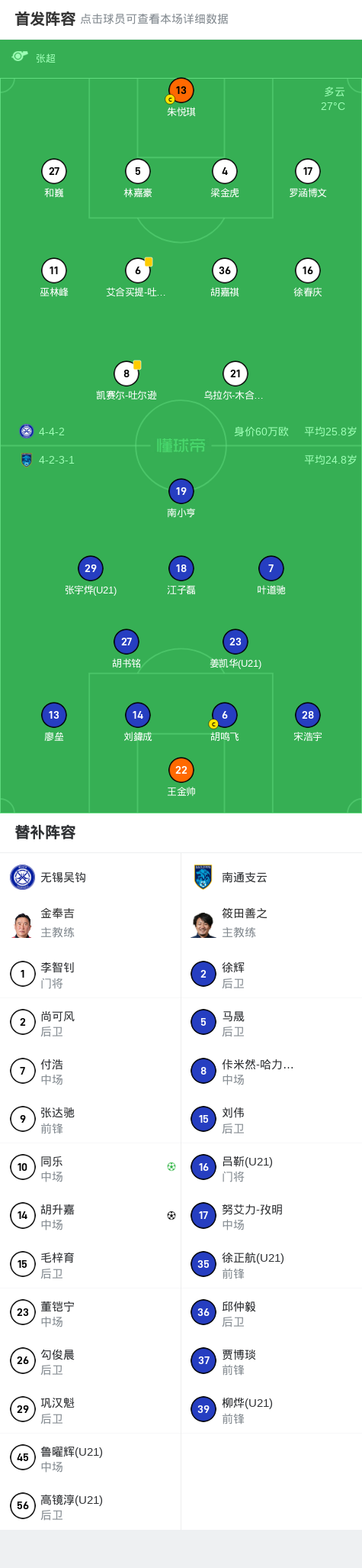 第24分钟,南通支云被动调整,胡鸣飞伤退,刘伟替补上场