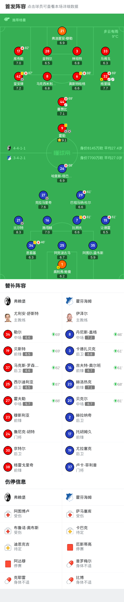 弗赖堡3-2霍芬海姆,霍勒梅开二度,堂安律破门