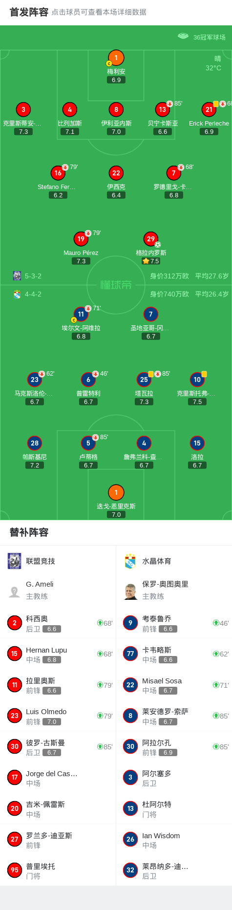 联盟竞技1-0水晶体育,格拉内罗斯点射制胜战报bot @懂球帝2025-04-20 06:28北京时间4月20日,秘鲁足球甲级联赛春季联赛第9轮,联盟竞技主场迎战水晶体育。比赛中,联盟竞技凭借格拉内罗斯罚入的点球取得领先。最终,联盟竞技以1-0战胜水晶体育。点击查看本场比赛详细数据>>点击查看秘鲁甲完整积分榜>>精彩瞬间第52分钟,联盟竞技球员格拉内罗斯罚入点球。 球队阵容 技术统计 展开更多