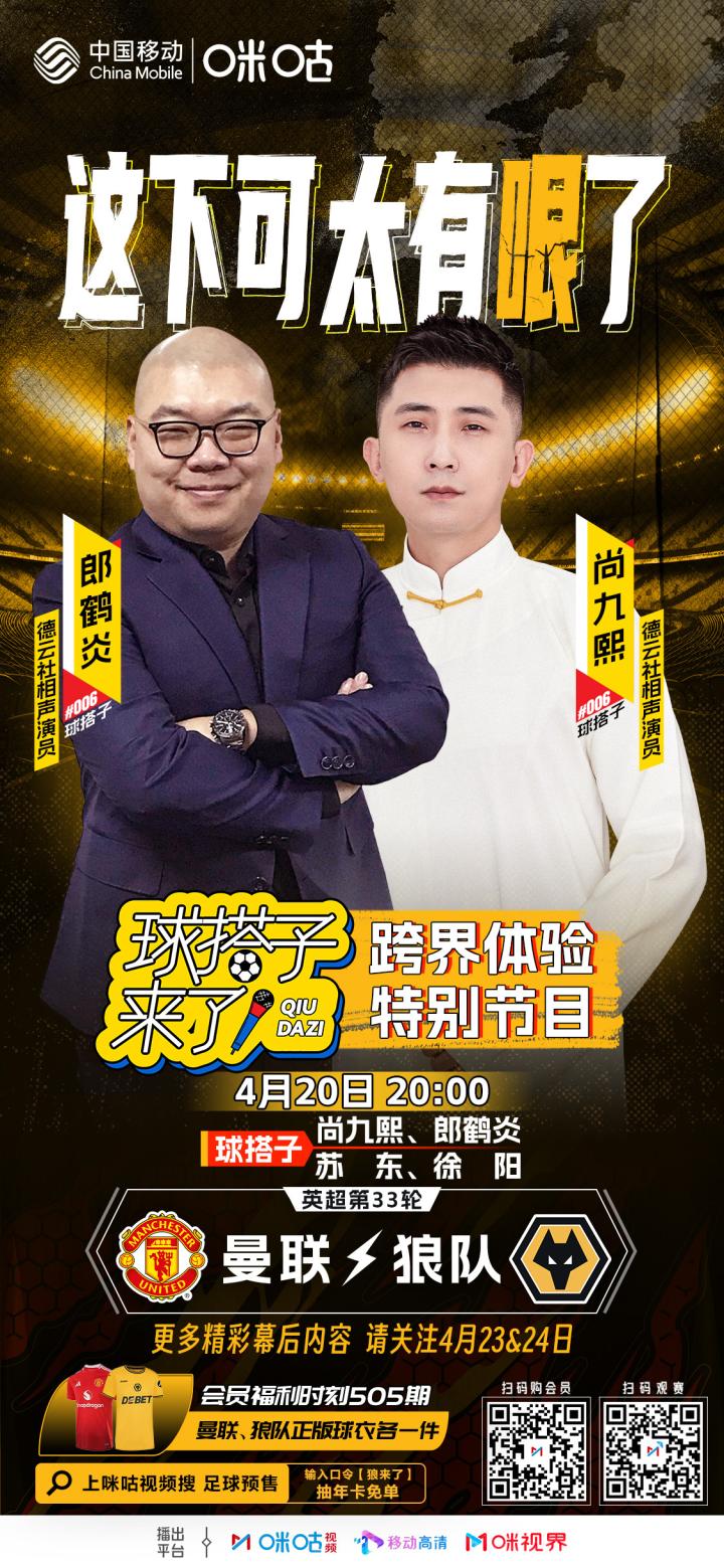 跨界,相声演员尚九熙、郎鹤炎将解说英超曼联vs狼队新闻罗伯特 @懂球帝2025-04-20 10:31咪咕体育发布微博宣布,相声演员尚九熙和郎鹤炎将会跨界解说北京时间4月20日20:00进行的曼联vs狼队的英超比赛。本文由新闻罗伯特自动编译,欢迎大家在评论区提出建议和意见,帮助我们不断优化。展开更多
