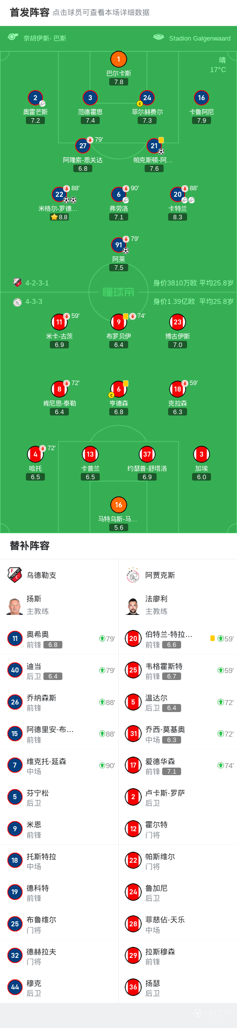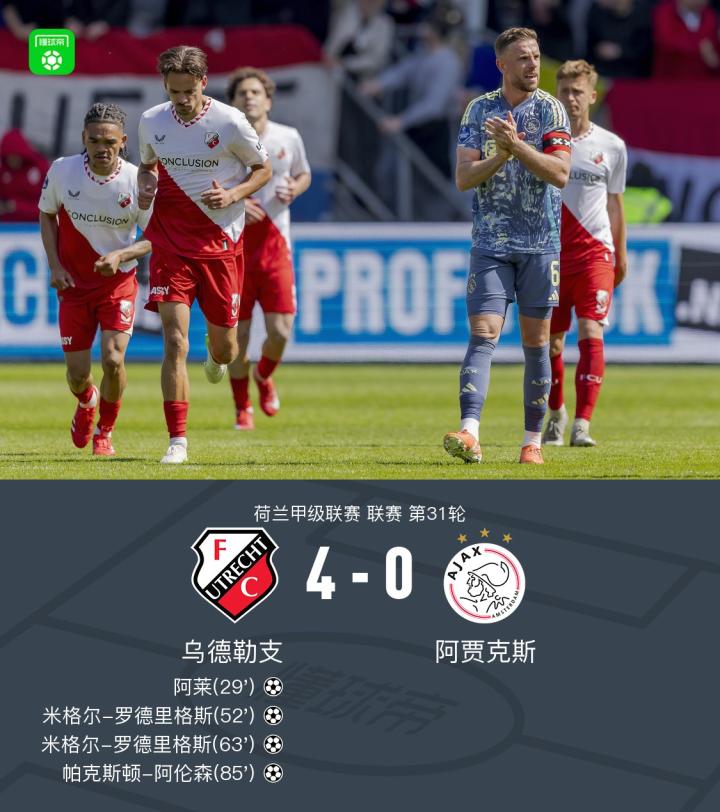 乌德勒支4-0阿贾克斯,罗德里格斯双响,阿莱、阿伦森建功