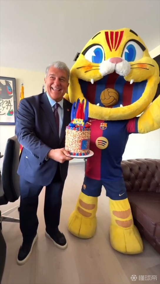 拉波尔塔和巴萨吉祥物互动,送上节日祝福与彩蛋蛋糕
