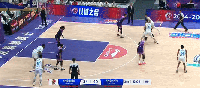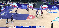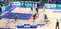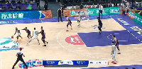 第二节,里勒顶翻防守人随后空中对抗将球打进,首钢50-47北控