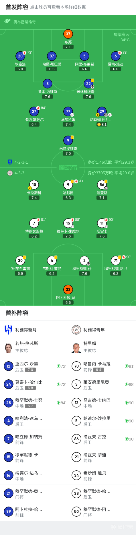 新月2-2利雅得青年,达瓦萨里、米林科维奇建功,波登斯破门