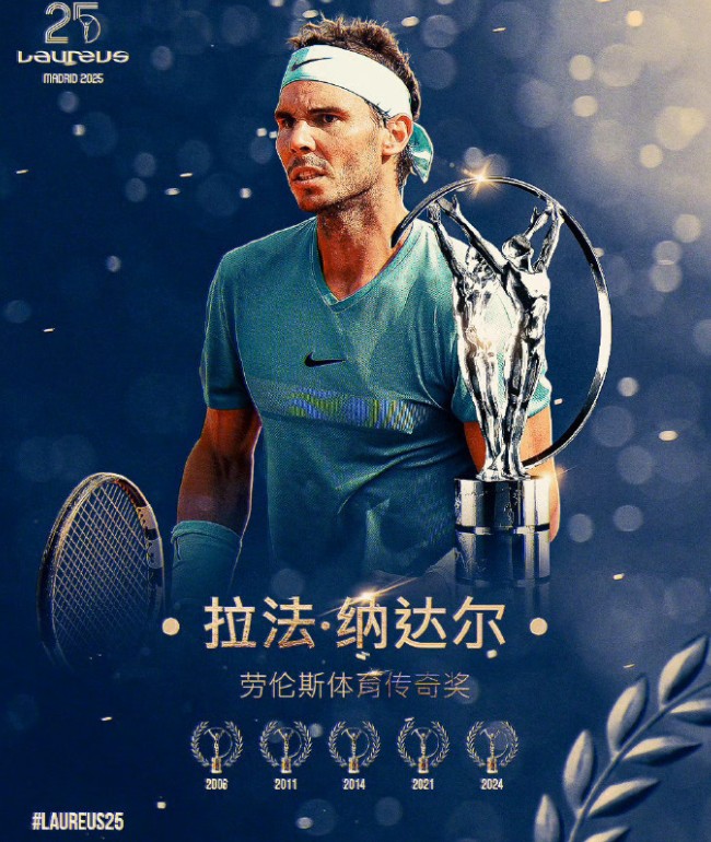 官方:西班牙网球名将纳达尔荣获劳伦斯体育传奇奖
