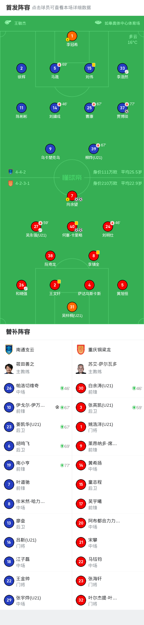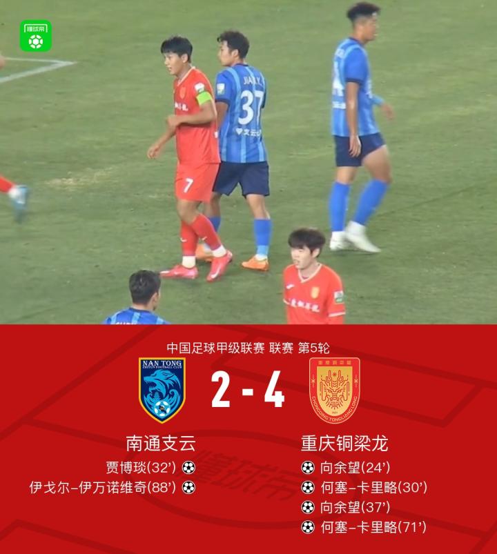 南通支云2-4重庆铜梁龙,向余望、卡里略双响