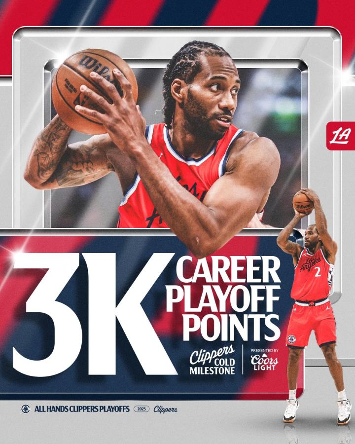 莱昂纳德季后赛得分突破3000大关暂居第29,距前一位沃西仅3分