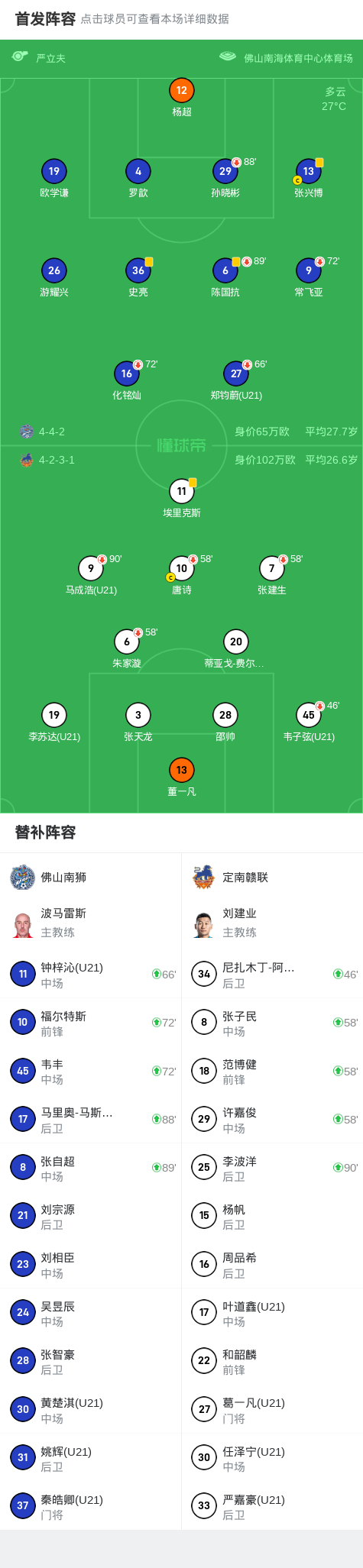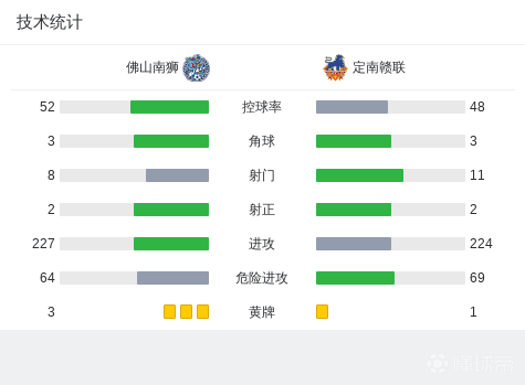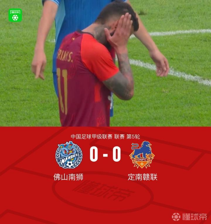北京时间4月23日,中国足球甲级联赛第5轮,佛山南狮主场迎战定南赣联。上半场常飞亚小角度射门,球击中门框弹出。下半场埃里克斯门前推射打偏错失良机。最终佛山南狮与定南赣联以0-0的比分握手言和。