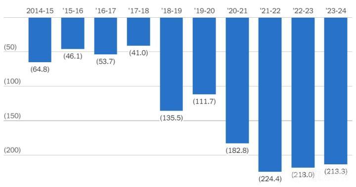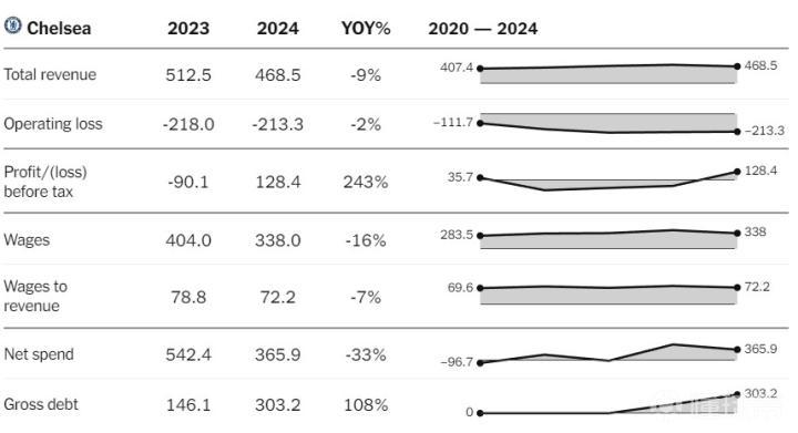 切尔西试图抑制俱乐部的薪资通胀,但俱乐部仍需支付高额工资。球员摊销成本仍接近2亿英镑,加上世俱杯收入的提振,预计本赛季仍会录得巨额运营亏损。更糟的是,本赛季球员出售利润仅2800万英镑,同比暴跌1.2亿英镑。目前来看,2024-25财年切尔西将重返巨额税前亏损。