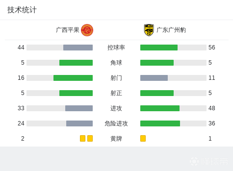 广西平果1-3广东广州豹,罗萨梅开二度,若昂-卡洛斯传射建功