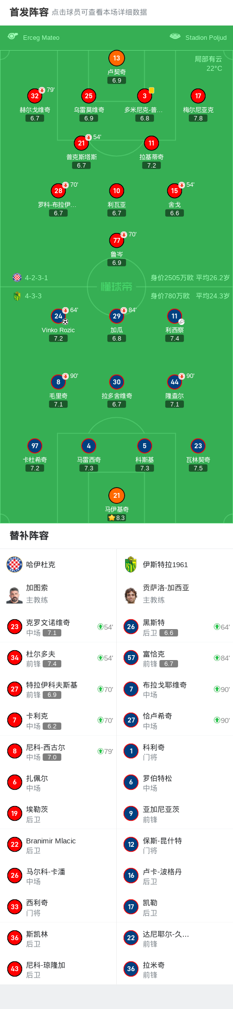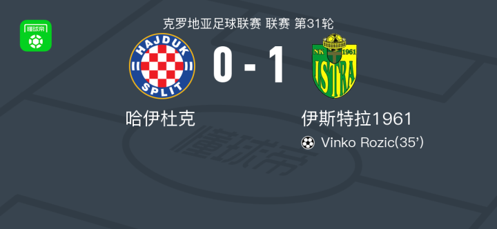 北京时间4月23日,克罗地亚足球联赛第31轮,哈伊杜克主场迎战伊斯特拉1961。比赛中,伊斯特拉1961由Vinko Rozic完成进球,帮助球队取得领先。最终,哈伊杜克0-1不敌伊斯特拉1961。