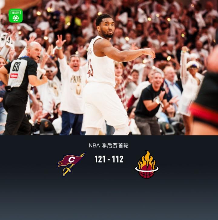 第四节骑士米切尔拿下17分,热火达维昂-米切尔拿下14分,最终骑士121-112战胜热火