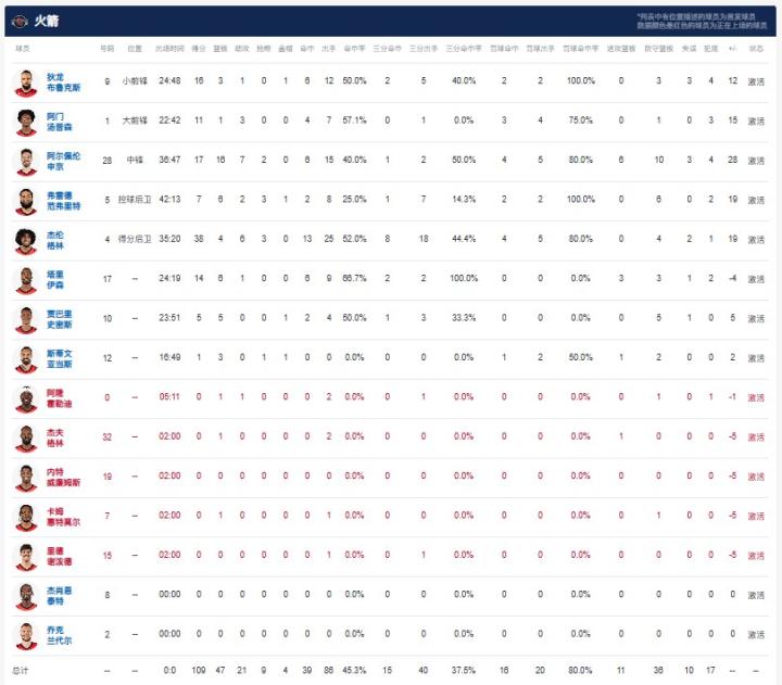 球员全场数据
