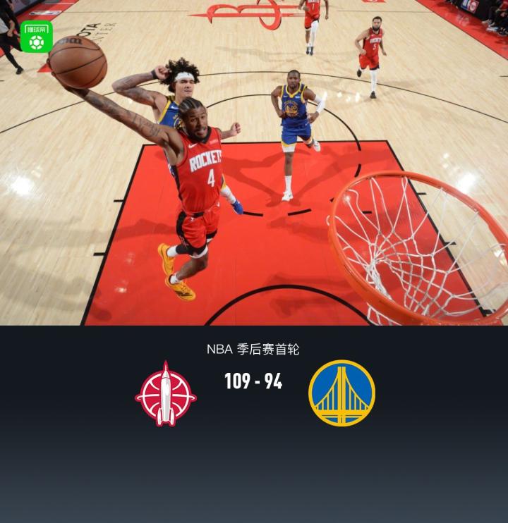 北京时间4月24日,NBA季后赛首轮G2火箭主场迎战勇士,开场火箭迅速取得领先接近两位数,首节末段勇士巴特勒失衡重摔倒地伤退,随后火箭迅速掌控比赛节奏领先两位数,半场火箭60-46勇士,火箭多次将分差拉大至20分上下,勇士反扑但进攻依旧乏力始终无法追至个位数分差,最终火箭109-94勇士,将大比分扳至1-1。