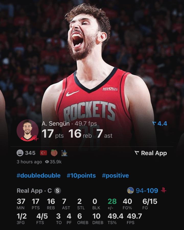 与此同时,申京也成为了斯科蒂-皮蓬之后,火箭队首位在季后赛中砍下15+15+5的球员。