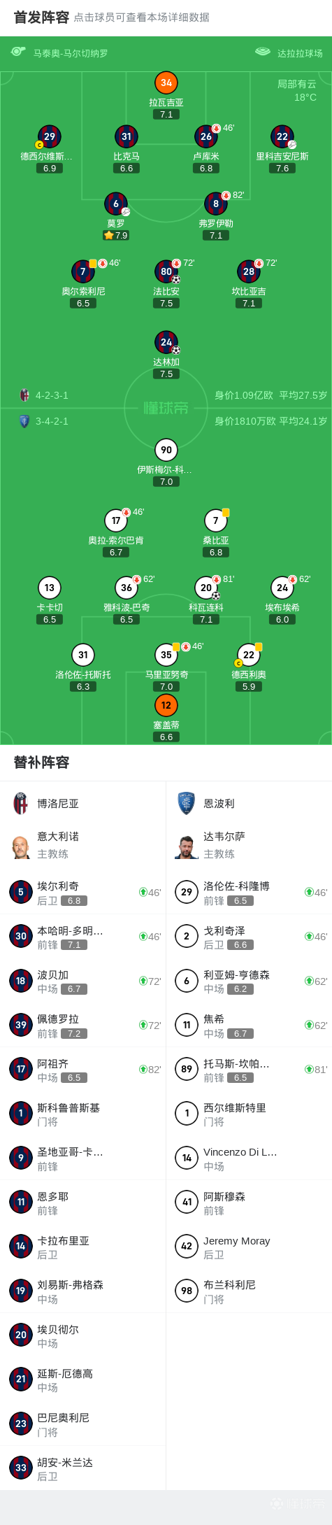 第7分钟,梦幻开局!莫罗送出传中,法比安头球破门,博洛尼亚1-0