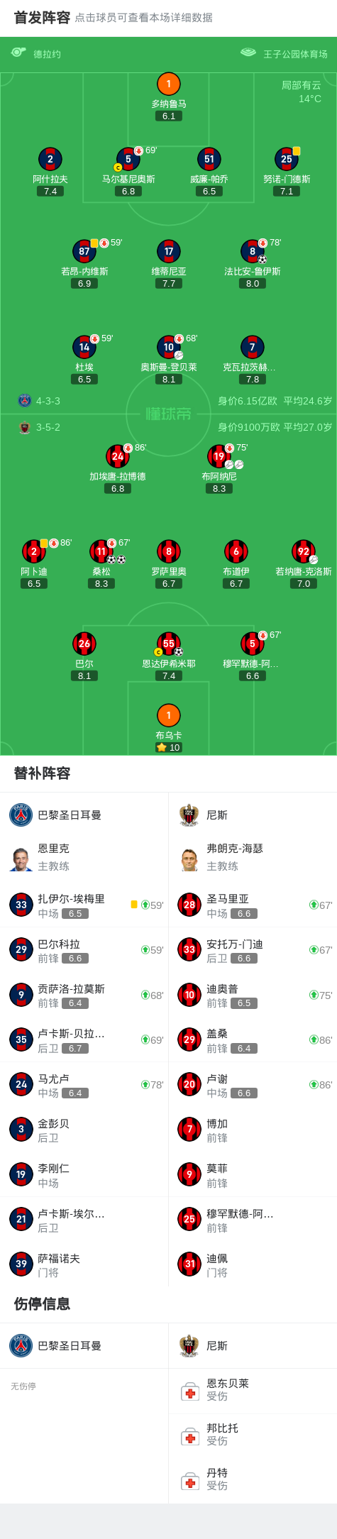 剑南春|巴黎主场1-3尼斯遭赛季首败,桑松梅开二度