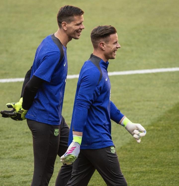 特尔施特根晒决赛踩场训练照:大战来临!LaPulga @懂球帝2025-04-26 10:07特尔施特根入选了巴塞罗那国王杯决赛大名单,他在社交媒体上晒出了自己的决赛踩场训练照。巴塞罗那全队在昨天抵达塞维利亚后于卡图哈球场进行了踩场训练,在个人社交媒体上,特尔施特根晒出了自己的训练照,并发文写道:“大战来临!”此外,特尔施特根还晒出了一张与什琴斯尼的合照。在因伤缺阵七个月后,特尔施特根目前已经获得了队医出战许可,不过本场决赛巴萨的首发门将依然会是什琴斯尼。展开更多