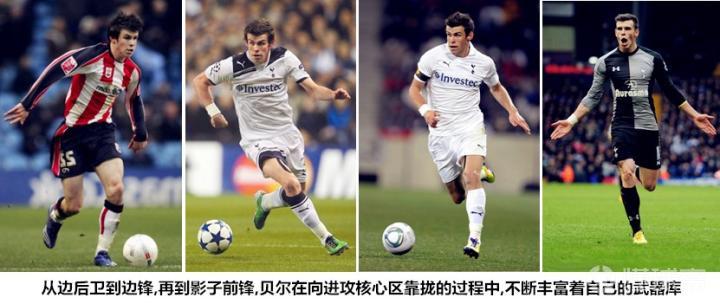 作为曾经被认为是有望打破梅罗二人转的金球奖候补人选,贝尔的职业生涯经历了一个从翼类偏将向中军主将转型的艰难过程。历经雷德克纳普、博阿斯、安切洛蒂、贝尼特斯和齐达内等多位名帅的持续打磨,以及自身有意识地打法调整和风格再造,威尔士人在职业生涯的巅峰期已经成为了一个能够胜任攻击线上多个位置、掌握了十八般武艺的前场多面手。