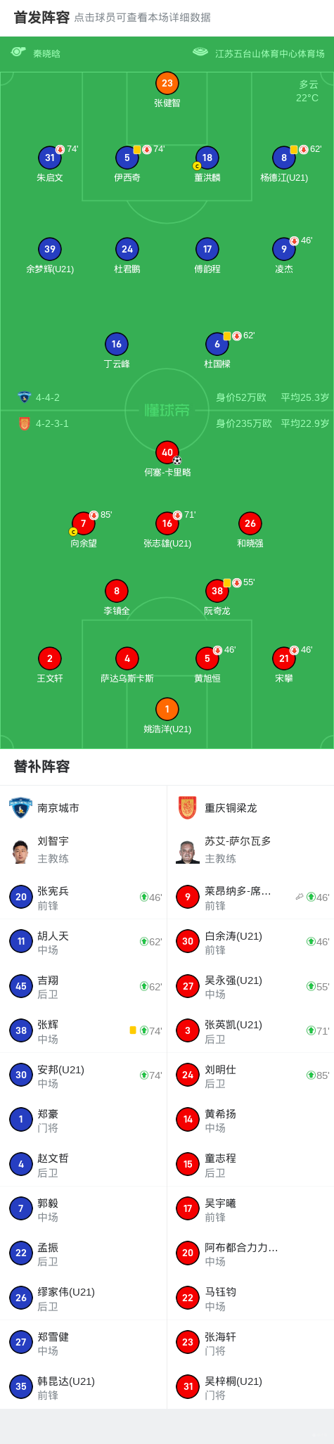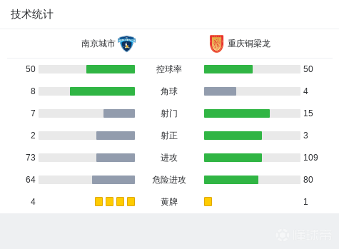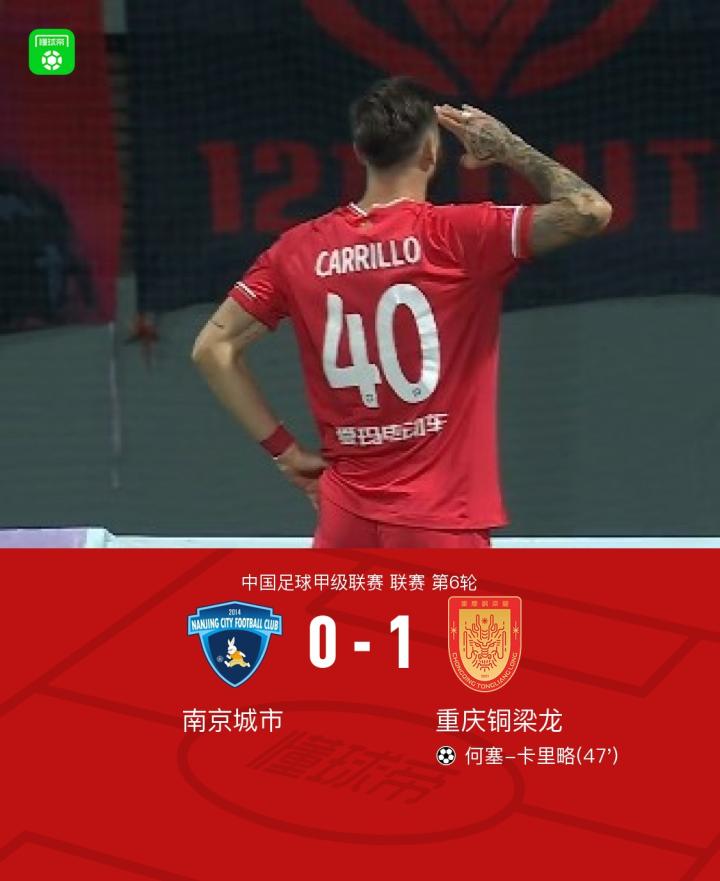 重庆铜梁龙客场1-0南京城市,卡里略制胜,莱昂纳多助攻