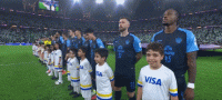 双方球员步入球场,大战即将打响