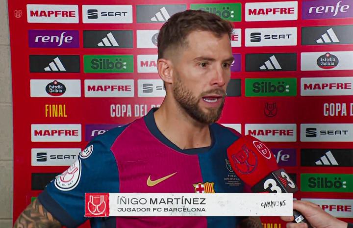 北京时间4月27日,巴萨3-2战胜皇马夺得本赛季西班牙国王杯冠军。赛前,皇马与裁判的争议事件闹得沸沸扬扬。赛后,巴萨后卫伊尼戈-马丁内斯在接受采访时谈及了此事。