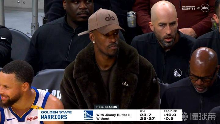 本场比赛,巴特勒因伤休战,他也身穿了一件貂绒大衣坐在了替补席。