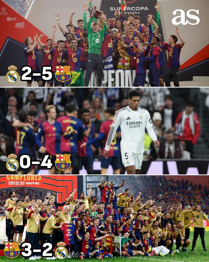 西班牙国王杯决赛,皇家马德里2-3不敌巴塞罗那无缘夺冠,本赛季对阵巴萨三战全败,但是在上赛季,皇马曾三杀巴萨。