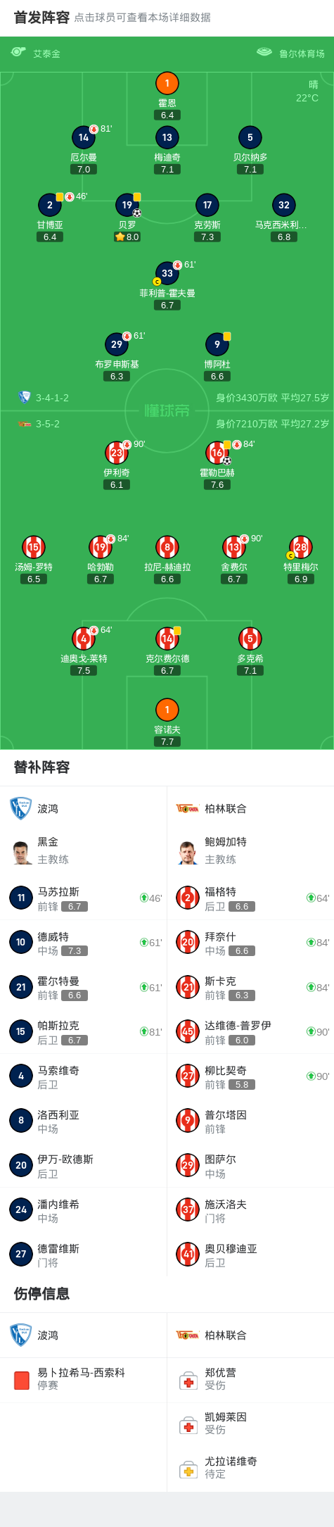 波鸿1-1柏林联合,霍勒巴赫、贝罗破门