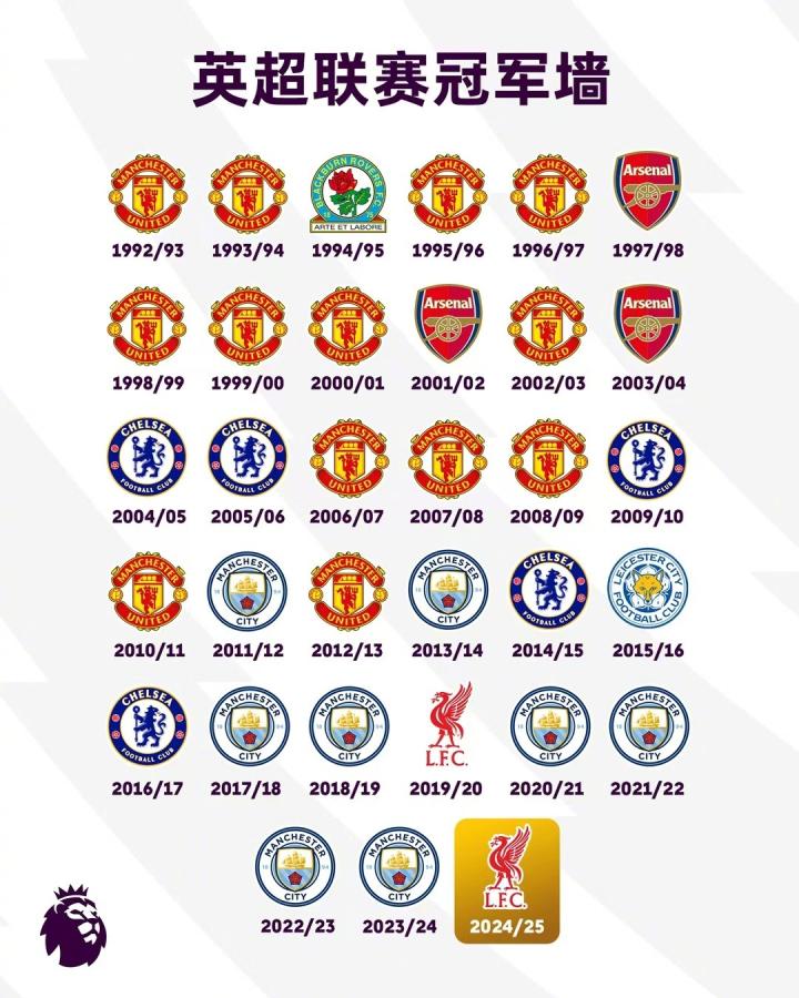 英超历史夺冠榜:曼联13冠居首,利物浦2冠列第五ETChalmers @懂球帝2025-04-28 01:35在5-1击败热刺后,利物浦提前四轮夺得本赛季英超冠军,这是利物浦第二次夺得英超冠军,位列英超历史夺冠榜第五。这是利物浦队史顶级联赛第20次夺冠,也是自1992-93赛季英超成立以来第二次夺冠。英超夺冠榜1 曼联 13冠2 曼城 8冠3 切尔西 5冠4 阿森纳 3冠5 利物浦 2冠6 布莱克本流浪者 1冠6 莱斯特城 1冠展开更多