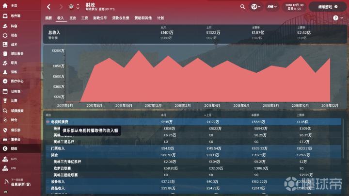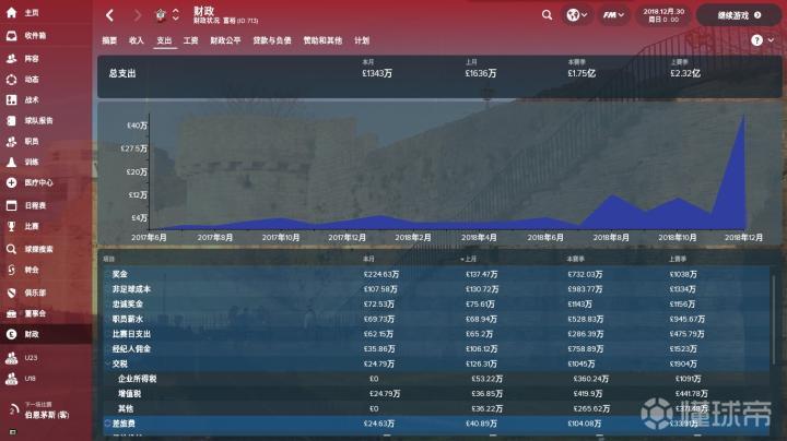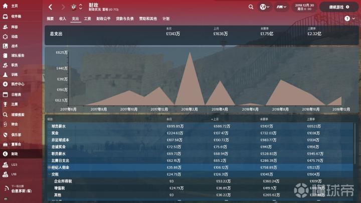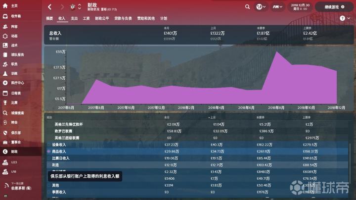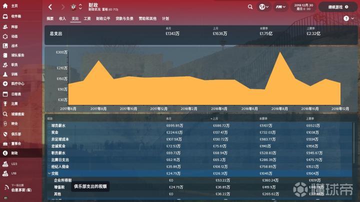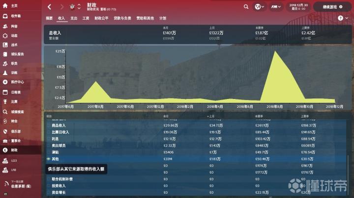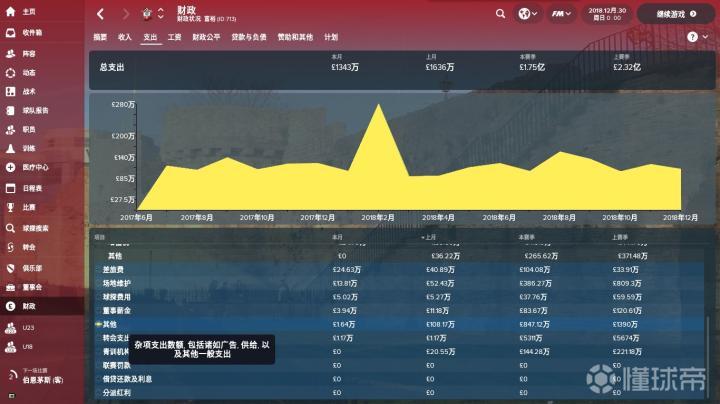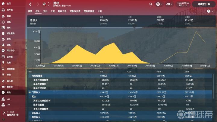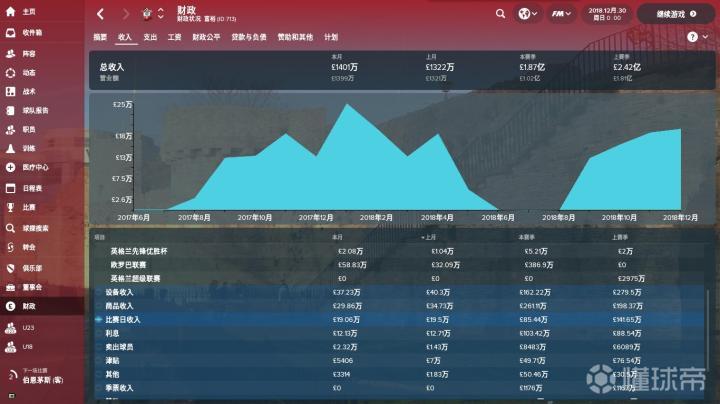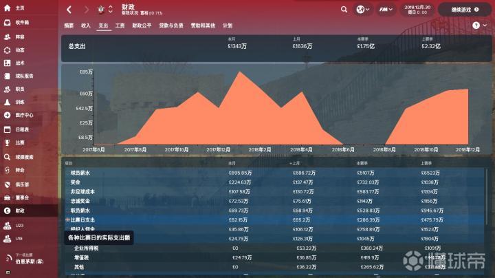 以上是职业队的财政情况。非职业队财政情况和职业队有很大不同,我会在下一篇攻略中介绍非职业队的财政。