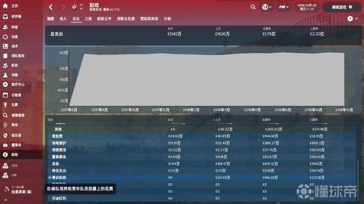 15.青训支出。有一些财政困难的球队会不支持你发展青训,这个是有原因的,不是不愿意发展,而是没钱。