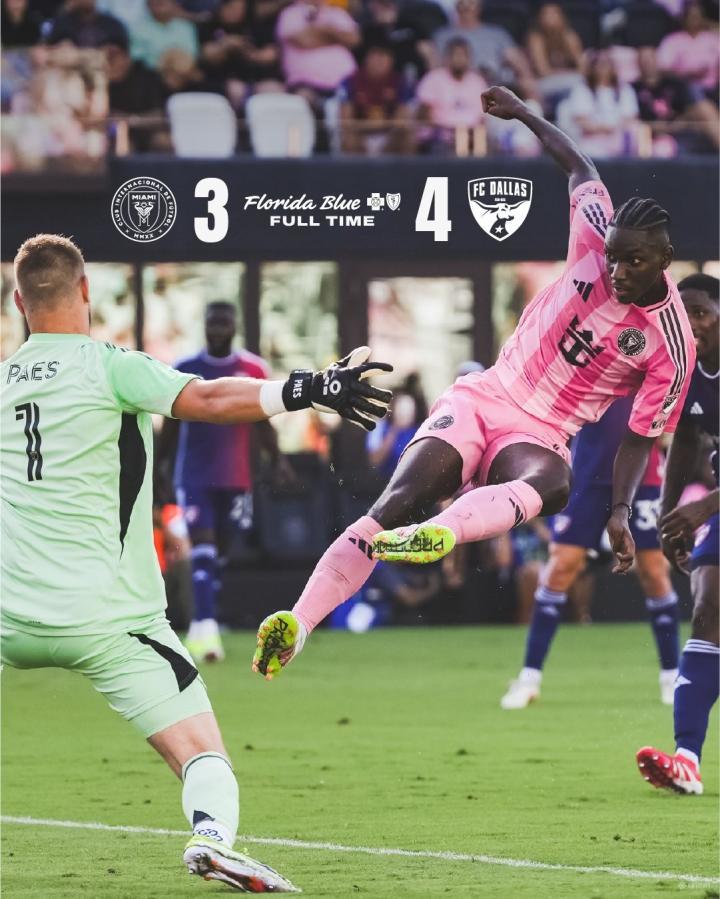 梅西轮休,迈阿密国际3-4遭达拉斯逆转,遭遇本赛季联赛首败