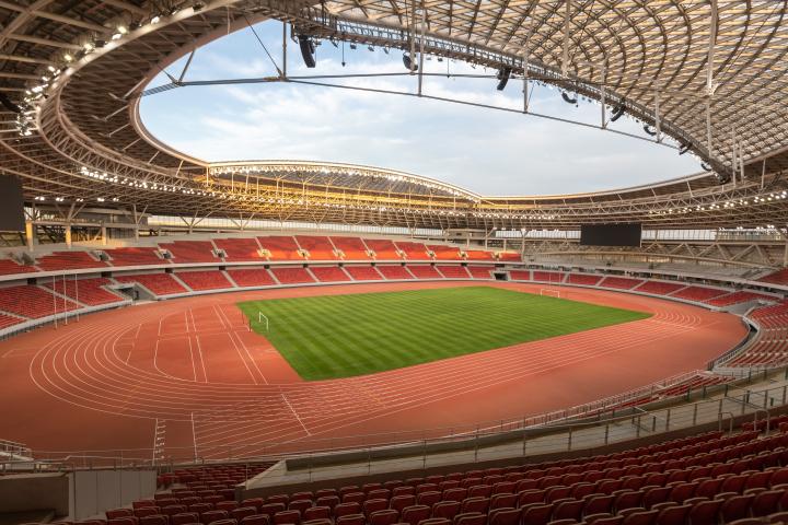 雄安体育中心于4月正式投入运营,开始承办国内外大型赛事活动,2025“懂球少年”雄安国际邀请赛是雄安体育中心运营以来,首次承办的大型足球赛事。雄安体育中心采用一场两馆设计,如同“山水印章”,镌刻于雄安新区启动区北部大学园片区,地理位置优越,项目总占地面积约35万㎡,项目总建筑面积约19万㎡。体育场屋顶采用4700吨钢结构整体提升技术,地面组装后一次性吊升至30米高度,属国内首创,场心两侧都配有分辨率W2944*H1152的大屏幕。