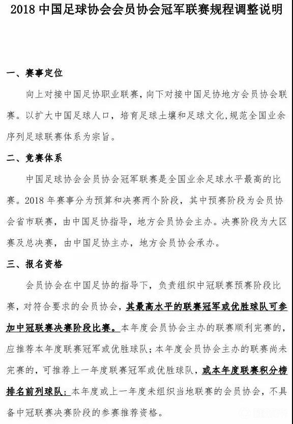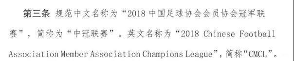 拿到章程后,首先发现新一年度联赛最大的改变就是赛事名称。本赛季的联赛正式更名为“2018中国足球协会会员协会冠军联赛”,官方简称“中冠联赛”。