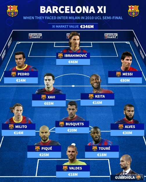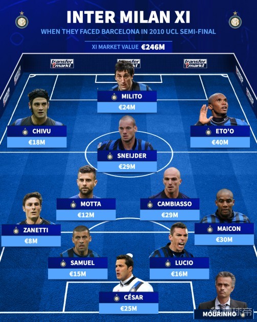2010年欧冠半决赛巴萨vs国米首发回顾:梅西、伊布vs埃托奥