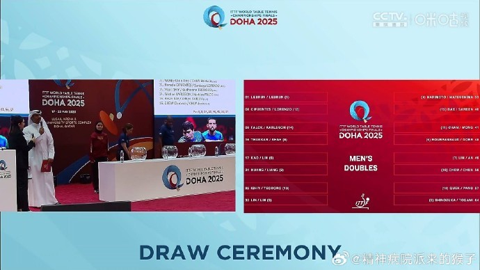 多哈世乒赛男双、女双种子抽签:国乒两对男双同1/4区