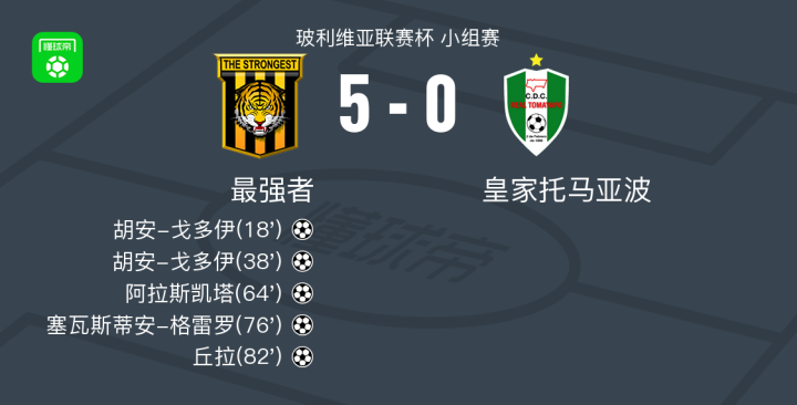 最强者5-0横扫皇家托马亚波,胡安-戈多伊梅开二度,丘拉建功
