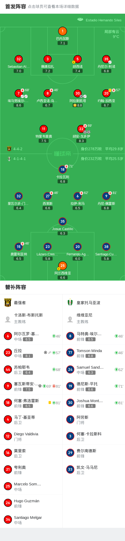 第76分钟,最强者球员阿拉斯凯塔助攻塞瓦斯蒂安-格雷罗打入一球。