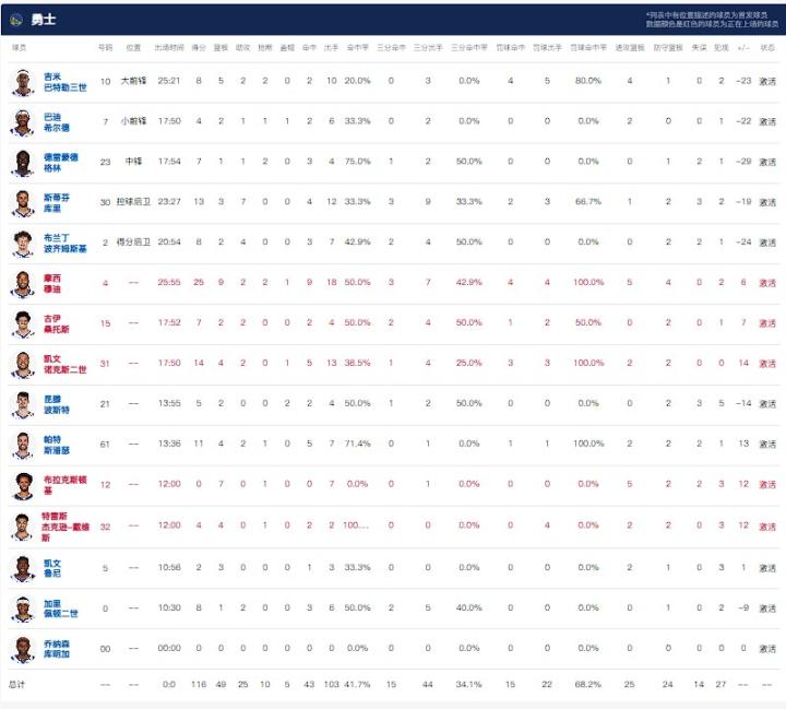 金州勇士穆迪22分9板2助2断1帽,凯文-诺克斯14分3板2助1帽,斯蒂芬-库里13分3板7助。