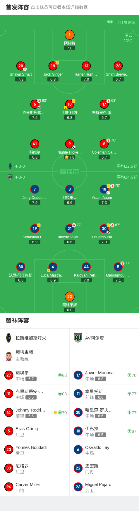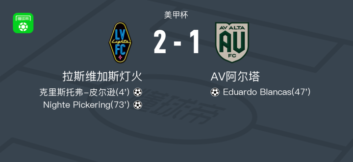 拉斯维加斯灯火2-1AV阿尔塔,Nighte Pickering建功,克里斯托弗-皮尔逊破门