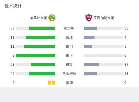 第12分钟,哈马比女足球员布拉克斯塔打入一球。